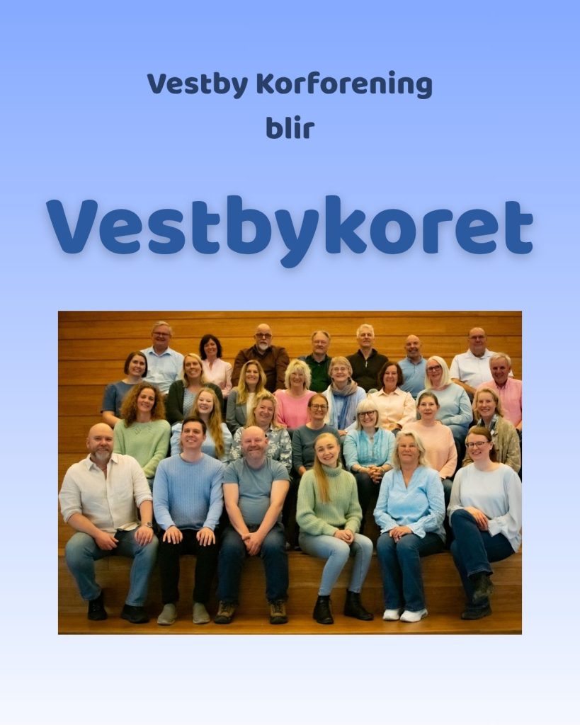 Vestby Korforening startet som et tradisjonelt damekor i 1937. Siden den gang har vi utviklet oss mye; vi har sluppet til mannfolka og repertoaret har endret seg fra salmer til moderne rytmisk musikk. Navnet skjemmer ingen, men det ligger mye identitet i et navn, og vi synes at Vestbykoret reflekterer bedre hvem vi er i dag.